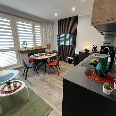 Den Gästen steht eine Küche mit einem Wasserkocher, einem Kühlschrank und einem Herd zur Verfügung. Das Apartment ist nur wenige Gehminuten entfernt von der Bushaltestelle Szczecinska - Wiezowiec.